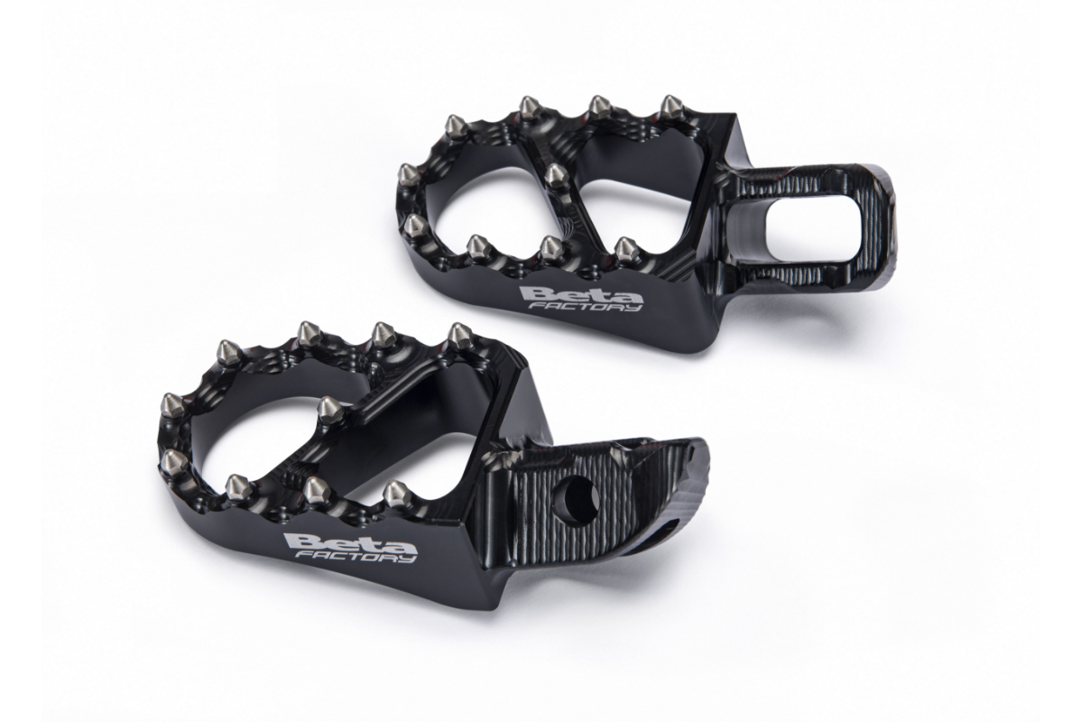 - Ergal alloy footpegs: to ensure maximum control at all times and no loss of contact with the bike, the RR Race models are fitted with Ergal racing footpegs with steel pins which are interchangeable; these are narrower than in the past to facilitate movement of feet, but better in terms of grip.